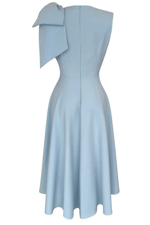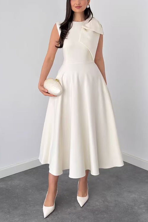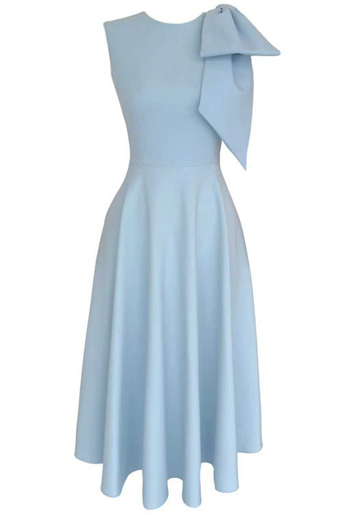 Crewneck Sleeveless Bow Shoulder A-line Midi Dress