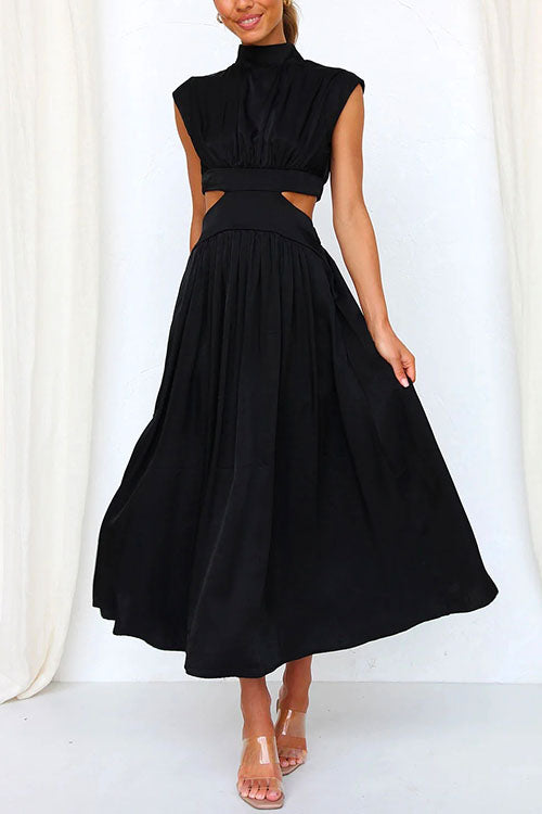 Margovil Mockneck Cut Out Waist Pockets Swing Dress