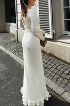 Margovil Bell Sleeves Back Lace-up Ruffle Trim Maxi Dress