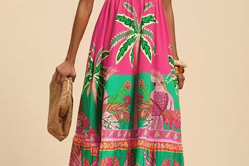 Margovil Twist Front Side Slit Mesh Overlay Printed Maxi Cami Dress