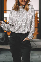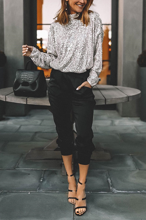 Shine bright in the Mockneck Long Sleeves Glitter Sequin Top, designed to make every moment unforgettable. With its eye-catching glitter sequins and sophisticated mockneck silhouette, this top combines glamorous style with a comfortable fit. Perfect for festive nights or upscale events, it effortlessly transforms your look with sparkle and elegance. Make a statement and embrace your bold side with this stunning wardrobe essential.