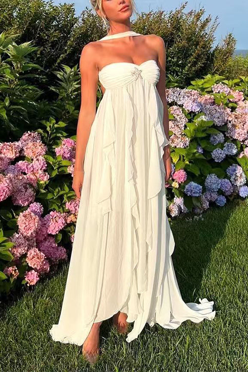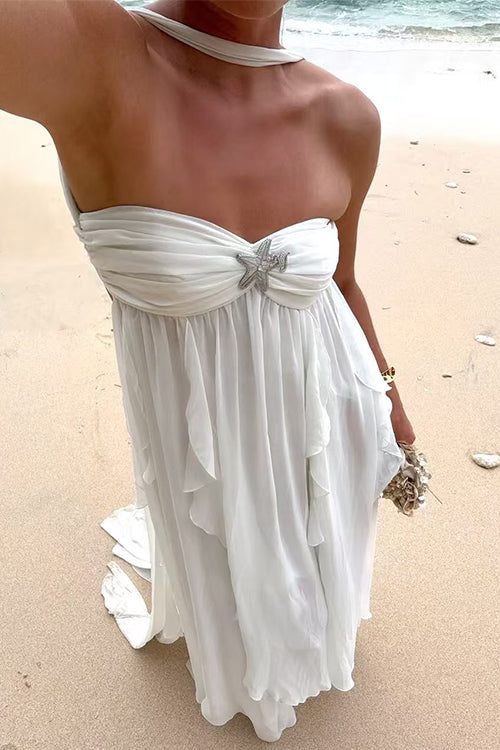 Margovil Sleeveless Open Back Ruffle Trim Slit Maxi Dress